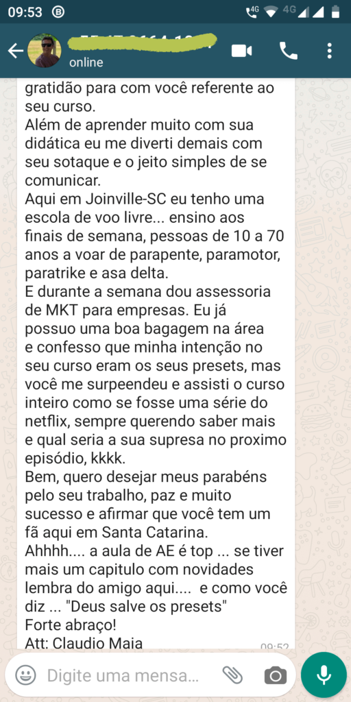 Isso foi algo incrível que aconteceu! Como quero ajudar o máximo possível meus alunos, eu peguei meu curso anterior e coloquei como BÔNUS nesse. Agora é fantástico pois, além de aprender tudo que o treinamento “Mão na roda AE!” tem a oferecer, o aluno também vai levar para casa ANOS de experiência que eu tive como videomaker e ser um profissional COMPLETO NA ÁREA!
