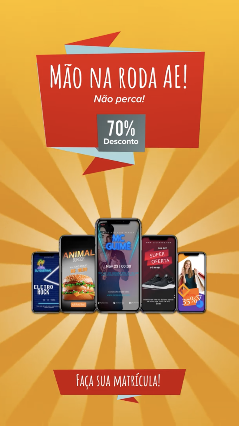 O “MÃO NA RODA AE!” foi pensado para as pessoas que nunca trabalharam com vídeo, animação e design gráfico como também para aquelas pessoas que já trabalham e desejam aprimorar e ganhar mais tempo na criação de seus projetos. Com o a plataforma você vai conseguir criar e vender Artes, Flyers, Anúncios de Ofertas, Stories Animados, Logomarcas, Cartões de Visita, Cartões Interativos, Cardápios, e vai ter acesso a centenas de arquivos essenciais, como planilhas, apresentações de projetos, contratos & muito mais.